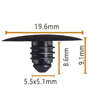 ამ ხრახნიანი ზემოდან განკუთვნილია ბრტყელი, დიამეტრით 19,6 მმ და სიგრძე 8.6 მმ, რაც უზრუნველყოფს ავტომობილის ყველა ნაწილს. შუაში გაზრდილი ნაწილი 5.5 მმ დიამეტრით და 5.1 მმ სიმაღლეა. ეს უნიკალური დიზაინი არამარტო აძლიერებს ხრახნის გამკაცრებას, არამედ ინსტალაციის პროცესს ამარტივებს. ქვედა არის ბრტყელი მრგვალი ბაზა, რომლის დიამეტრი 9.1 მმ, რაც უზრუნველყოფს ხრახნისთვის სტაბილურ მხარდაჭერას. საერთო ზომა აშკარად აღინიშნება, რაც თქვენთვის მოსახერხებელია, რომ გამოიყენოთ სწრაფად იდენტიფიცირება და შერჩევა.